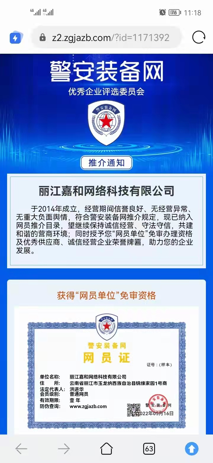 關于麗江淺境林棲谷隱酒店管理有限責任公司電子監控安防合格證下證通知