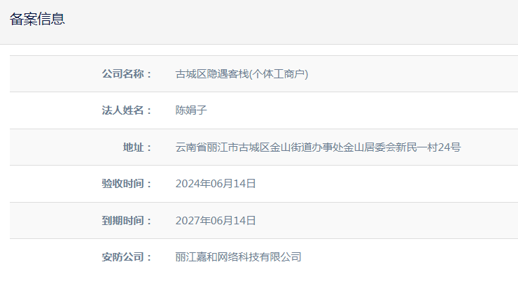 關于古城區隱遇客棧(個體工商戶)電子監控安防合格證下證通知