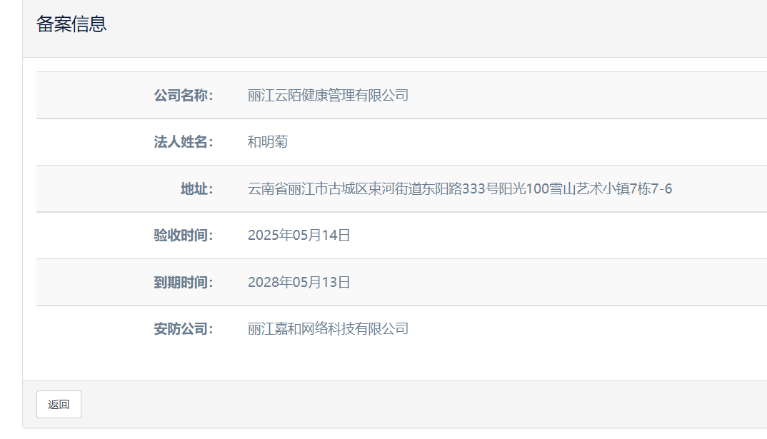 關(guān)于麗江云陌健康管理有限公司電子監(jiān)控安防合格證下證通知