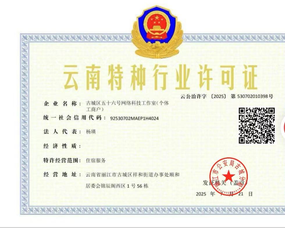 關于古城區宿光里民宿店(個體工商戶)電子監控安防合格證下證通知